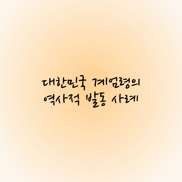 - 4.19 혁명(1960년): 이승만 정권의 퇴진을 계기로 계엄령이 선포되었으며, 민주화 요구가 폭발적으로 증가한 사건이었습니다.