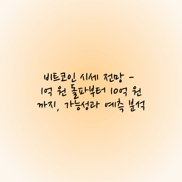 비트코인의 가격 전망은 대체로 긍정적이며, 향후 3억, 5억, 10억 원에 도달할 가능성도 존재합니다. 그러나 이러한 전망은 여러 경제적 변수와 규제 정책에 크게 의존하고 있으며, 투자자들은 변동성에 주의하여 접근할 필요가 있습니다. 비트코인이 장기적으로 성장할 잠재력을 갖추고 있지만, 그 이면에는 다양한 리스크와 제약이 존재하기 때문에, 장기적인 시각과 신중한 투자 전략이 요구됩니다.