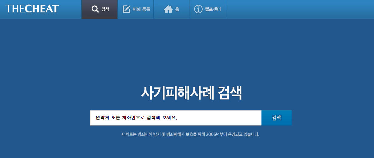 **더치트(TheCheat)**는 민간 사기 피해 신고 플랫폼입니다. 사용자들이 직접 신고한 전화번호와 계좌번호 정보를 실시간으로 확인할 수 있으며, 이 시스템은 특히 중고거래 시 매우 유용합니다.