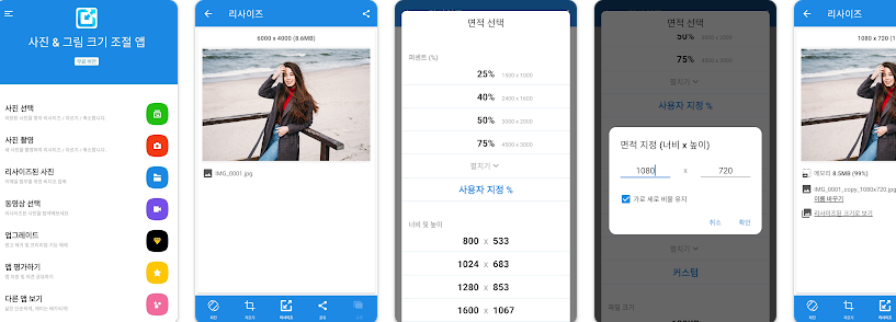 - 면적 선택 비율 설정: 사진의 크기와 용량을 줄이기 위해 적절한 면적 선택 비율을 설정합니다.