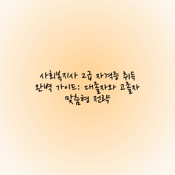 사회복지사 2급 자격증은 다양한 복지 현장에서 일할 수 있는 기회를 제공합니다. 대졸자와 고졸자의 취득 방법은 다르지만, 학점은행제를 활용하면 시간과 비용을 절약할 수 있습니다. 또한, 실습 과정이 매우 중요하므로 미리 계획을 세우고 준비하는 것이 성공의 열쇠입니다.