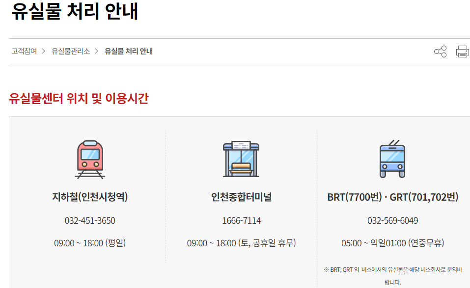- 인천 버스의 경우도 버스 운수 회사에 문의하여 물건을 찾을 수 있습니다.