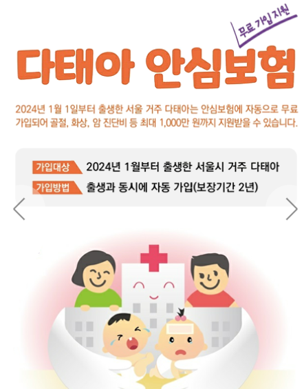 - ✅ 가입 대상: 2024년 1월 1일부터 2026년 12월 31일 사이에 출생한 다태아(서울시 거주)