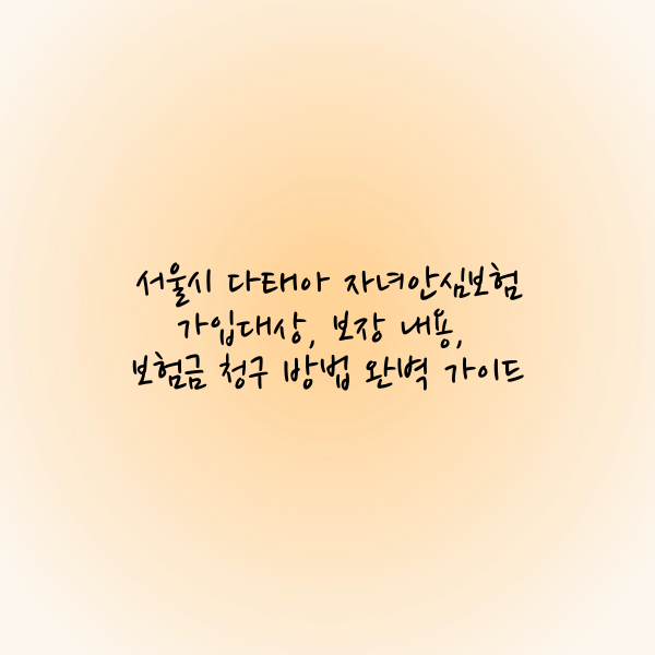이 글에서는 서울시 다태아 자녀안심보험의 가입 대상, 보장 내용, 보험금 청구 방법 및 주의사항을 상세히 소개합니다.