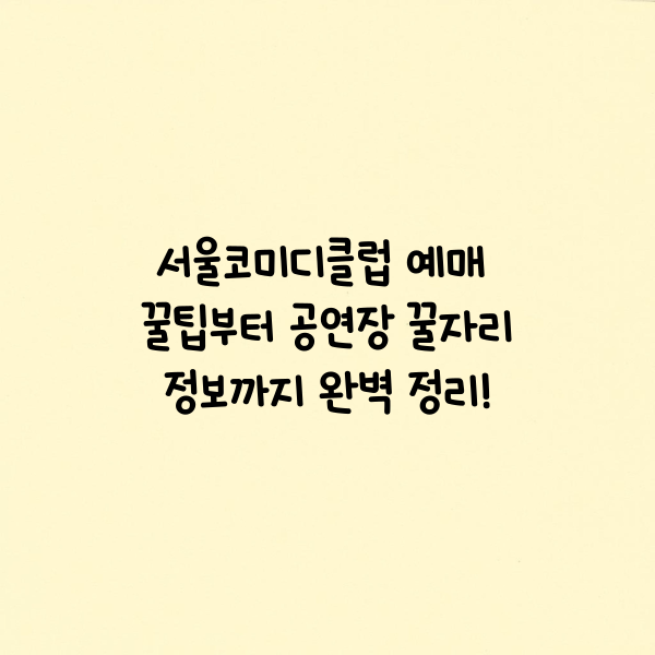 요즘 2030 세대 사이에서 ‘찐 재미’로 입소문이 난 곳이 있습니다. 바로 서울코미디클럽인데요. 지상파 개그 프로그램이 사라진 지금, 웃음을 찾는 사람들의 발길이 이곳으로 몰리고 있습니다. 하지만 그 인기가 워낙 대단하다 보니 예매 자체가 하늘의 별 따기! 오늘은 서울코미디클럽이 도대체 무엇인지부터 시작해서 예매 성공 전략, 좋은 좌석 확보 방법, 공연 당일 꿀팁까지 처음 가는 사람도 걱정 없는 완벽 가이드를 제공해드리겠습니다.