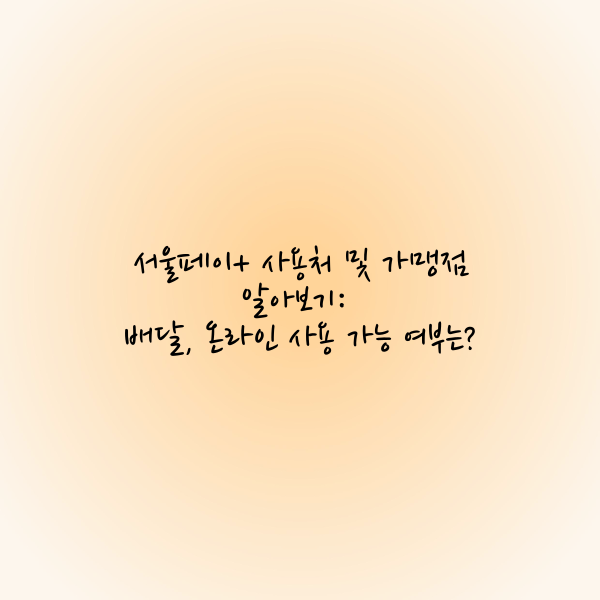 - 서울페이+는 주로 오프라인에서 사용되며, 배달과 온라인 결제에 제한이 있습니다. 일부 프랜차이즈나 대형 브랜드 매장에서는 결제가 불가능할 수 있습니다.