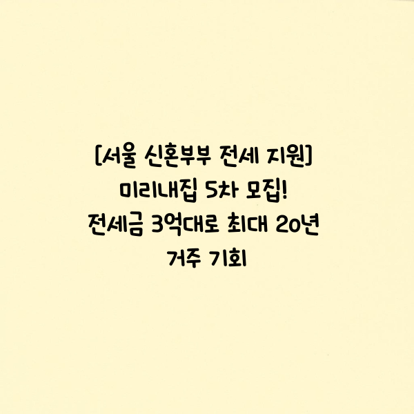 [서울 신혼부부 전세 지원] 미리내집 5차 모집! 전세금 3억대로 최대 20년 거주 기회