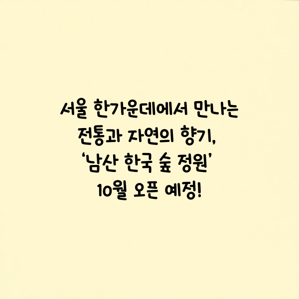 서울 한가운데에서 만나는 전통과 자연의 향기, ‘남산 한국 숲 정원’ 10월 오픈 예정!
