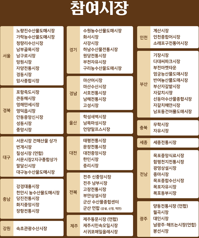 소비자의 설 성수품 구매 부담 완화를 위해 이번 행사의 참여 시장을 농축산물 130개소, 수산물 85개소로 확대하여 진행합니다.