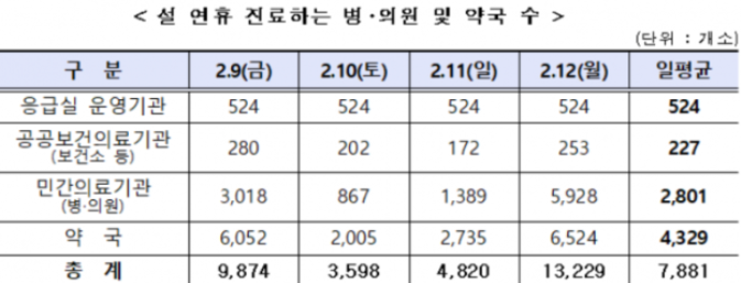 설 연휴 기간 동안 응급환자를 위해 전국에서 하루 평균 7881곳의 의료 기관이 문을 엽니다.