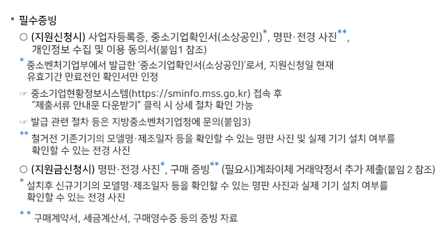 - 중소기업확인서(소상공인): 중소기업현황정보시스템에서 발급 가능