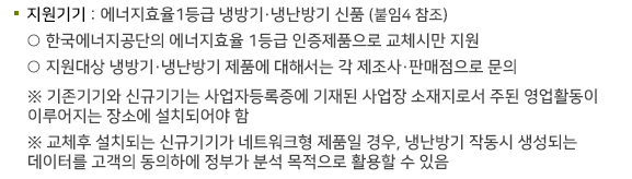 - 소상공인 냉난방기 지원사업은 에너지 효율 1등급 냉난방기 및 주요 가전제품을 구매한 소상공인들에게 구매 금액의 40%를 지원하는 제도입니다.