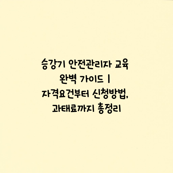 이번 글에서는 승강기 안전관리자 교육의 개요, 자격요건, 교육 과정, 신청 방법, 그리고 과태료 및 법적 책임까지, 관련 내용을 한눈에 이해하기 쉽게 정리해 드리겠습니다.