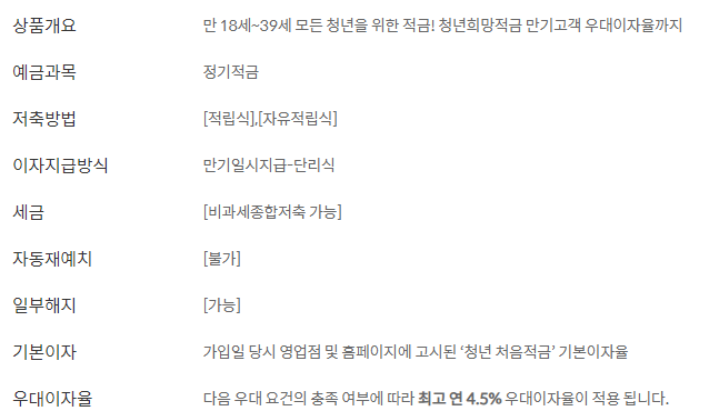 - 청년들을 위한 정기적금 상품으로, 놓치지 말아야 할 기회입니다.