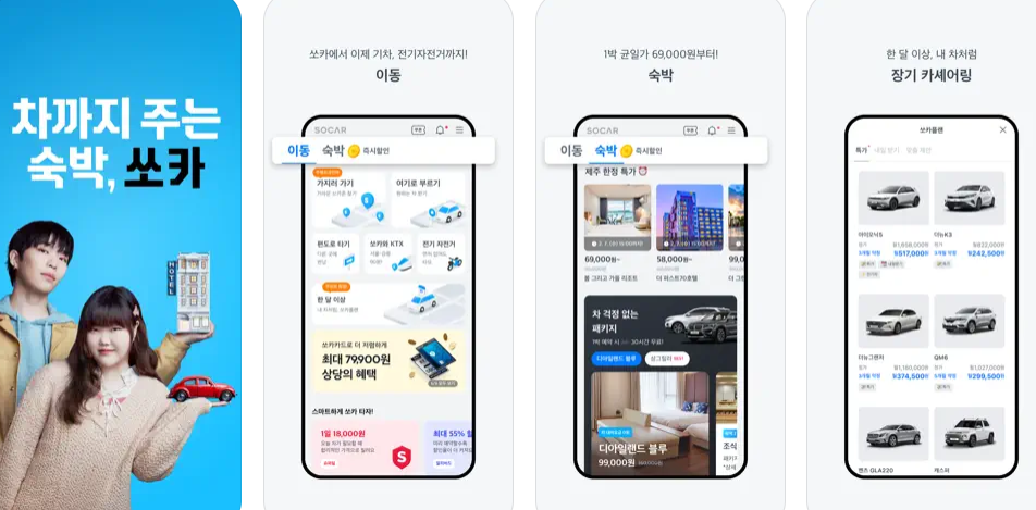 쏘카는 편리함과 경제성을 동시에 제공하는 카셰어링 서비스로, 차량 소유의 부담 없이 자유롭게 이동할 수 있는 솔루션입니다. 지금 쏘카를 이용하여 간편하고 경제적인 자동차 공유 서비스를 경험해 보세요.