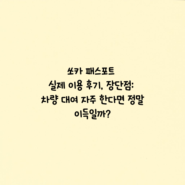 요즘 차량 공유 서비스를 이용하는 분들이 많아지면서, 쏘카(SOCAR)에서도 다양한 구독형 서비스를 선보이고 있습니다. 그 중에서도 많은 관심을 받고 있는 것이 바로 쏘카 패스포트인데요. 연간 29,900원의 저렴한 구독료로 다양한 혜택을 받을 수 있다는 점에서 많은 사람들이 "과연 이게 진짜 이득일까?"라는 고민을 하고 있습니다.
