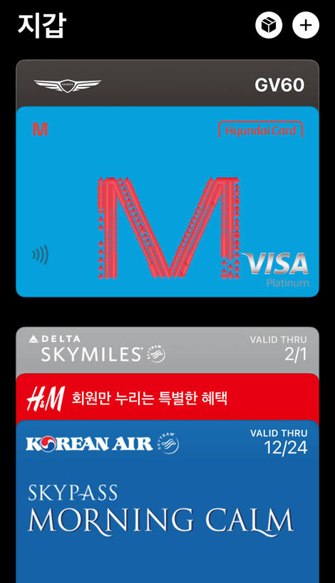 지갑 앱에 여러 개의 카드를 등록해두면 상황에 따라 원하는 카드를 선택해 사용할 수 있습니다.