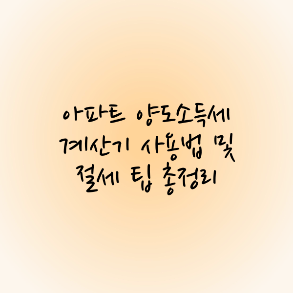 아파트 양도소득세는 부동산 매도 시 반드시 고려해야 하는 중요한 세금입니다. 양도소득세 계산기를 활용하면 예상 세액을 쉽게 확인할 수 있으며, 절세 전략을 잘 세우면 세금 부담을 줄일 수 있습니다.