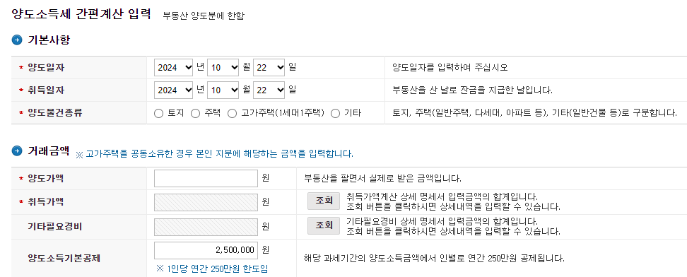 2. 양도소득세 계산기 사용법