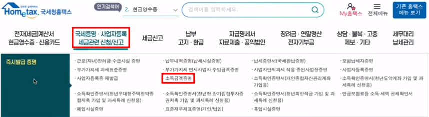 개인사업자나 프리랜서인 경우는 국세청 홈택스 홈페이지에서 소득금액 증명을 통해 확인할 수 있습니다.