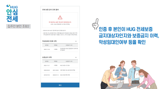 또한, 임대인이 주택도시보증공사(HUG)나 한국주택금융공사(HF)의 보증 가입 금지 여부를 동시에 조회할 수 있습니다. 보증 가입 금지 대상인 경우, 임차인은 이를 사전에 파악하여 더 신중한 결정을 내릴 수 있습니다.