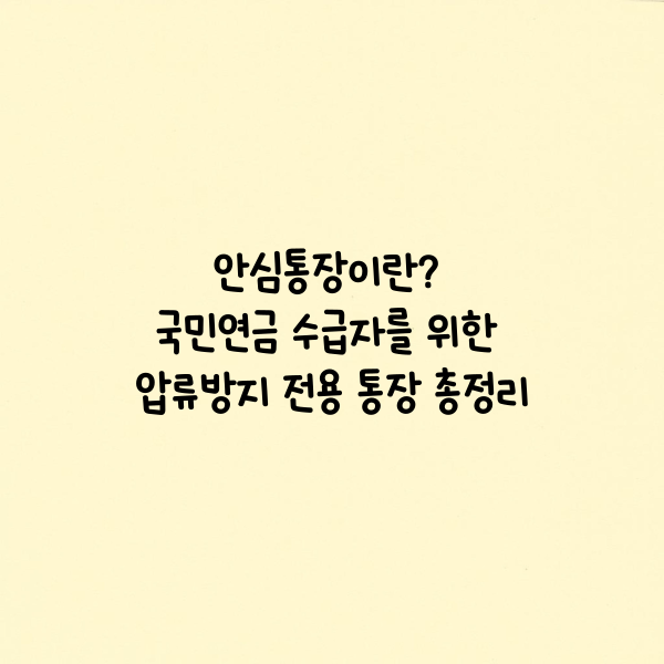 '안심통장'은 국민연금 수급자라면 누구나 개설할 수 있으며, 법적으로 보호되는 금액 한도 내에서는 압류로부터 안전하게 자산을 지킬 수 있는 통장입니다. 이 글에서는 안심통장의 개념부터 개설 방법, 주요 기능과 주의사항까지 모든 정보를 총정리해 알려드리겠습니다.