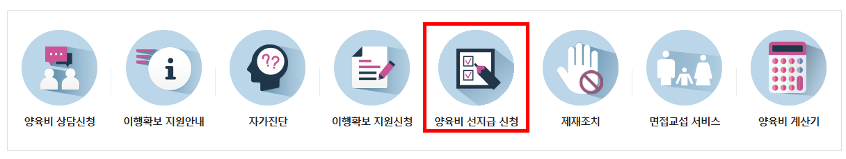 - '양육비 선지급제 신청' 메뉴 선택