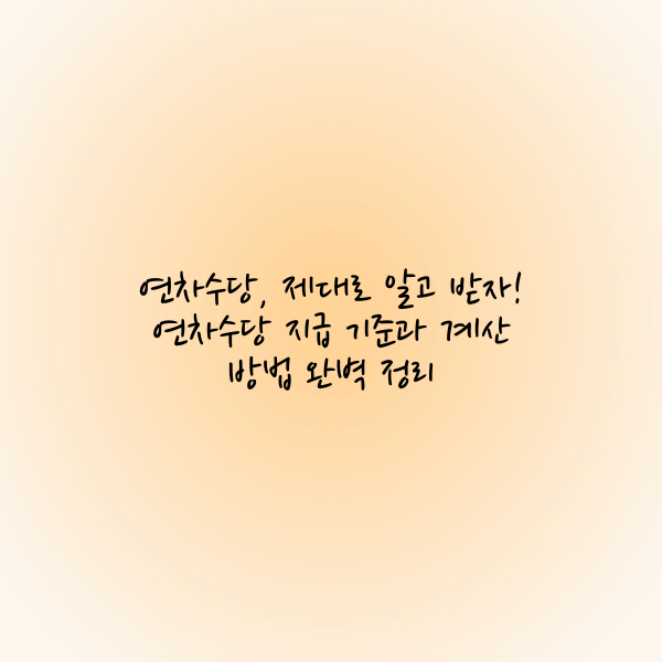 연차수당은 많은 직장인에게 중요한 근로 권리 중 하나입니다. 바쁜 업무로 인해 휴가를 제대로 사용하지 못하는 경우, 사용하지 못한 연차에 대해 금전적인 보상을 받을 수 있는 제도인데요. 이번 글에서는 연차수당이 무엇인지, 어떻게 계산되는지, 지급 기준과 주의사항 등을 자세히 알아보겠습니다. 연차수당에 대해 확실히 이해하고 제대로 된 수당을 챙겨보세요!