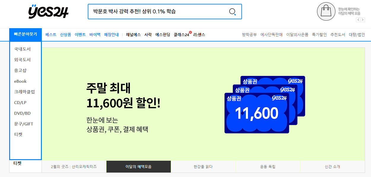 ✅ 예스24 홈페이지에 미리 로그인해두세요.