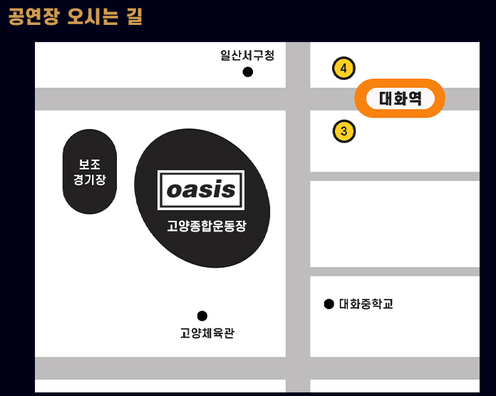- 대중교통: 고양종합운동장은 지하철 3호선 대화역과 가깝습니다.
