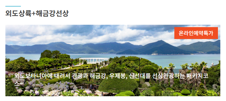 - 운항 코스: 해금강 + 외도 상륙 + 우제봉 선상 관광
