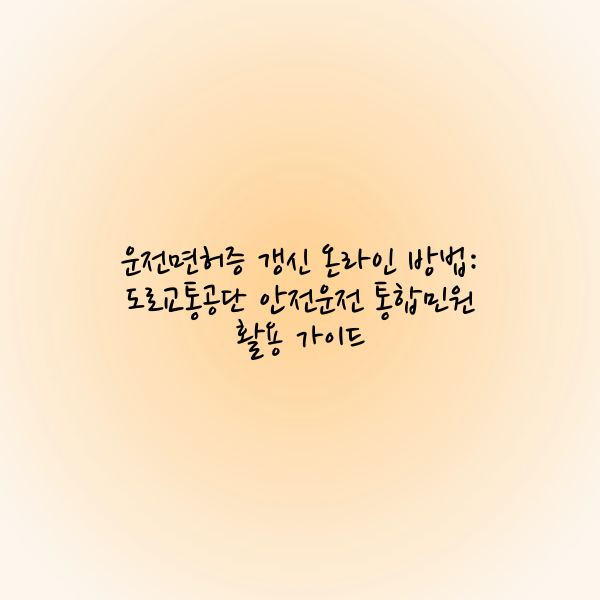 운전면허증 갱신은 안전한 도로 환경을 유지하기 위한 필수적인 과정입니다. 이 글이 여러분의 갱신 절차에 도움이 되기를 바랍니다.