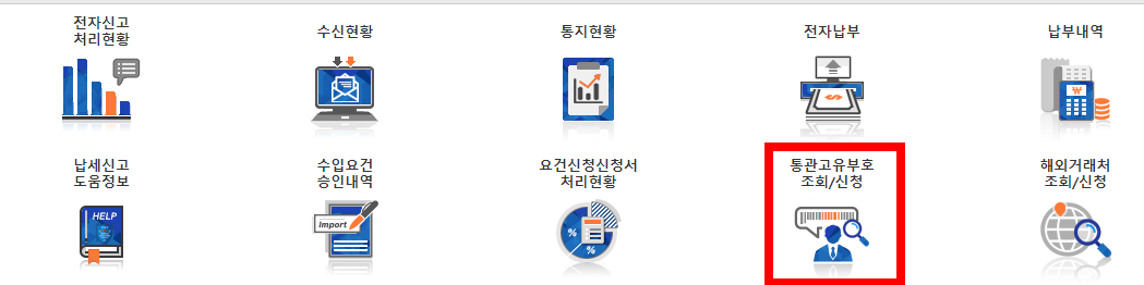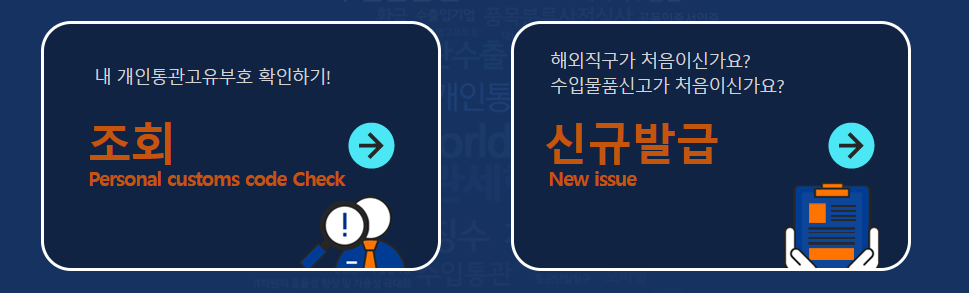 - 조회: 발급 화면으로 이동하여 통관번호 조회를 진행합니다.