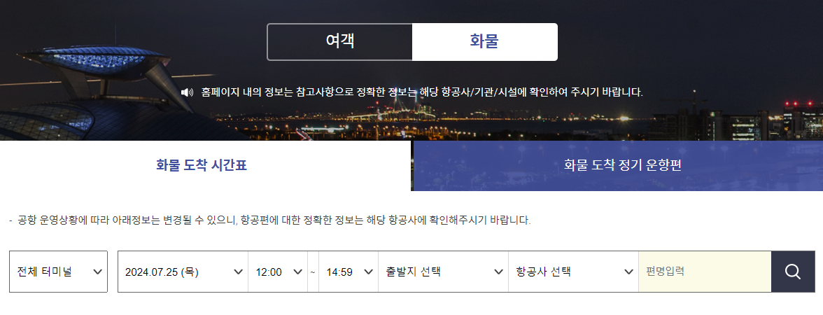 - 인천공항 화물 도착 조회 접속: 인천공항 화물 도착 조회 시스템에 접속합니다.