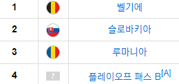 E조 - 벨기에, 슬로바키아, 루마니아, 플레이오프 위너 B