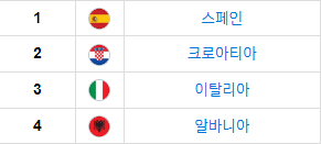 B조 - 죽음의 조로 네이션스리그 22-23 시즌에서 준결승전에 오른 4팀 중 무려 3팀인 이탈리아, 크로아티아, 스페인과 예선에서 조 1위로 진출에 성공하며 다크호스로 평가받는 알바니아가 모두 한 조에 편성된 이른바 죽음의 조입니다. 본선이 시작되면 가장 치열한 경쟁이 예상됩니다.