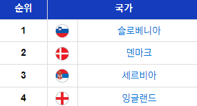 ·덴마크는 피파랭킹 19위로 지난대회 에릭센의 핀란드경기에서 갑작스런 심정지로 위기가 왔지만 어려울수록 하나되는 팀워크를 다져 4강까지 오르는 동화를 써내려 갔습니다. 이번 대회도 동화같은 극적인 모습을 보일지 기대를 모읍니다.