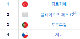 F조 - 튀르키예, 플레이오프 위너 C, 포르투갈, 체코