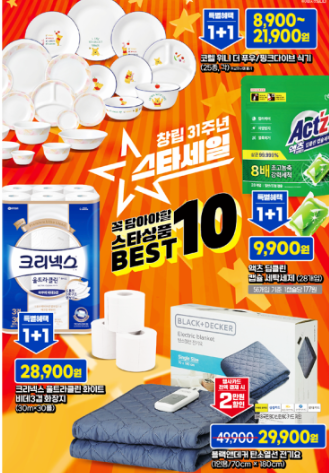 이번 행사의 핵심은 10개의 스타상품을 선정하여 파격적인 가격에 제공하는 것입니다. 대표적인 스타상품은 다음과 같습니다.