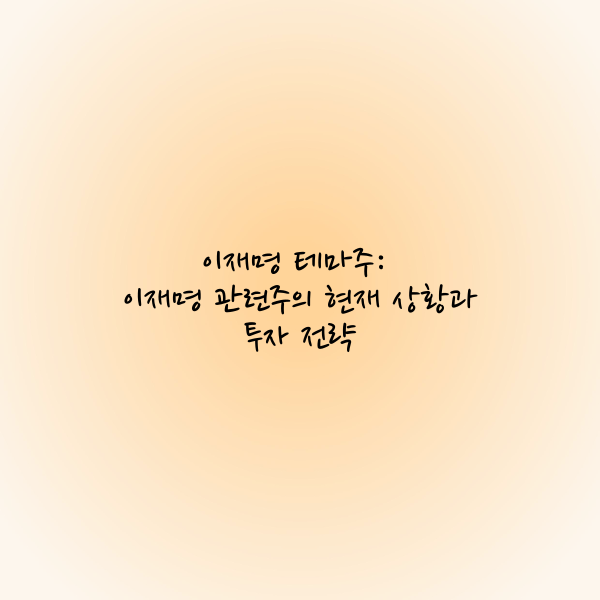 이재명 테마주: 이재명 관련주의 현재 상황과 투자 전략