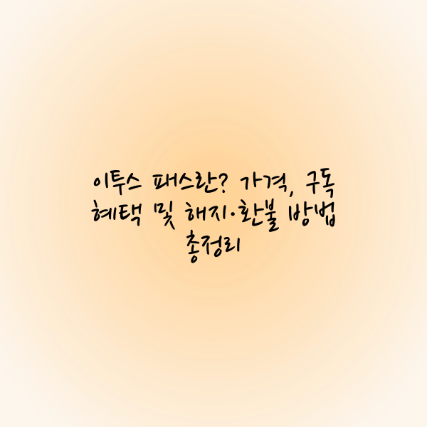 본 글에서는 이투스 패스의 종류와 가격, 제공되는 혜택, 해지 및 환불 방법을 상세히 정리하여, 이투스 패스 가입을 고려하는 분들이 현명한 선택을 할 수 있도록 도와드리겠습니다.