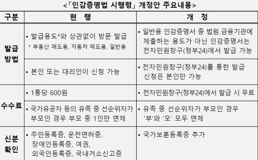 - 본인만 신청 가능: 인감증명서는 본인만 신청할 수 있으며, 이를 위해 전자민원창구용 전용서식을 신설했습니다.