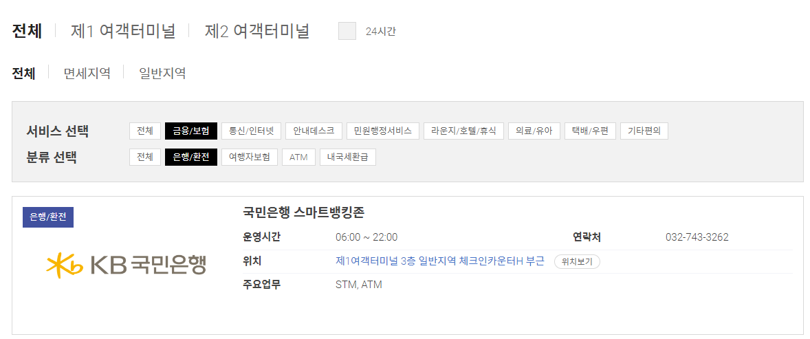 1. 하나은행 환전소 (제1여객터미널 입국장)