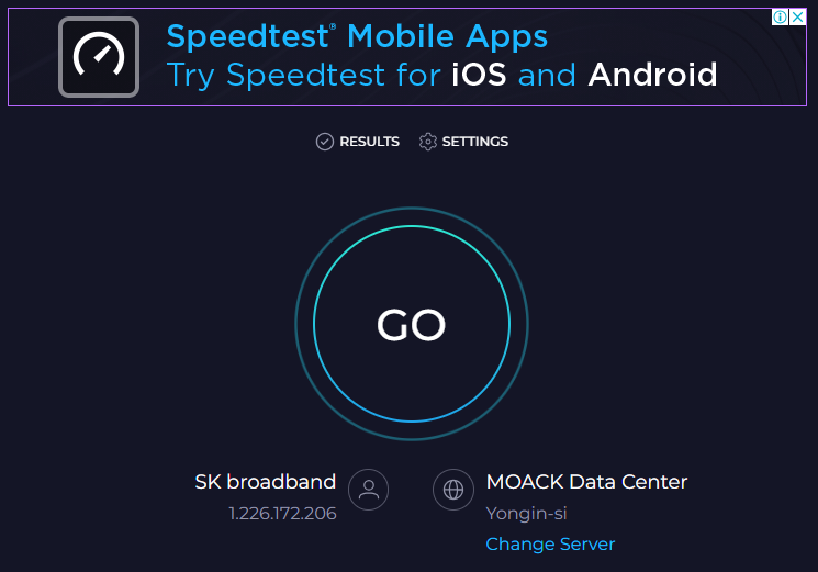Speedtest by Ookla 인터넷 속도 테스트 바로가기