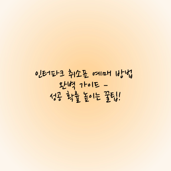 인터파크 취소표 예매는 매우 경쟁이 치열하기 때문에 미리 철저한 준비가 필요합니다. 다음과 같은 방법을 활용하면 성공 확률을 높일 수 있어요.