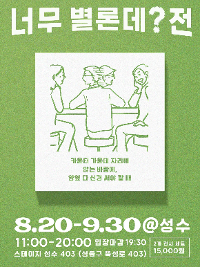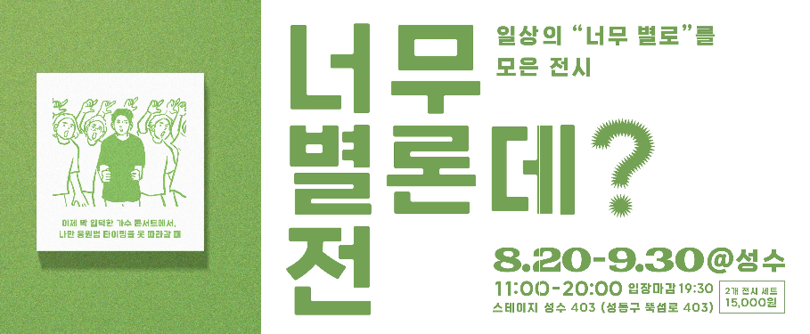 입장료 15,000원으로 ‘너무 착한데?전’과 ‘너무 별론데?전’을 한 번에 즐길 수 있습니다.