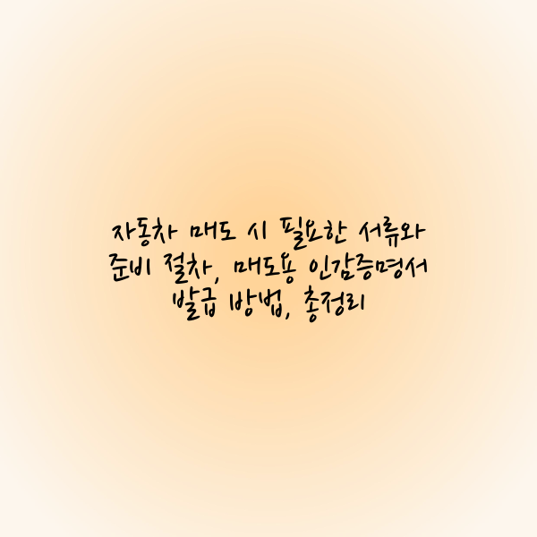 이 글에서는 자동차 매도 시 필요한 서류, 매도용 인감증명서 발급 방법, 주의사항 등을 상세히 안내해드립니다.