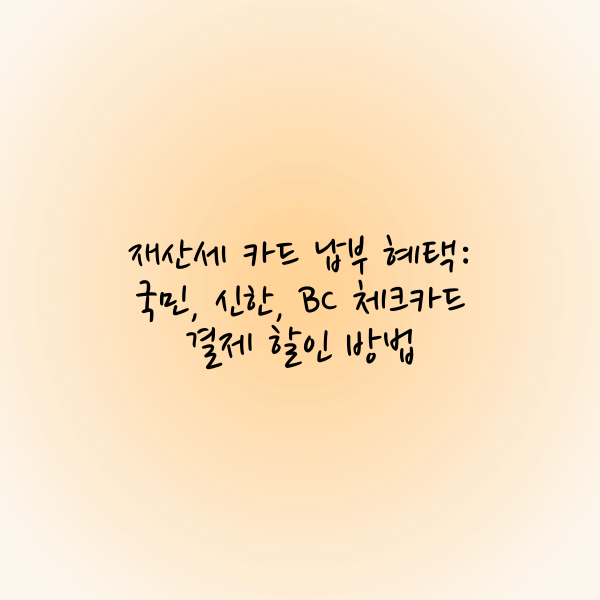 1. 재산세 카드 납부 혜택: 국민, BC, 신한 체크카드 할인 방법