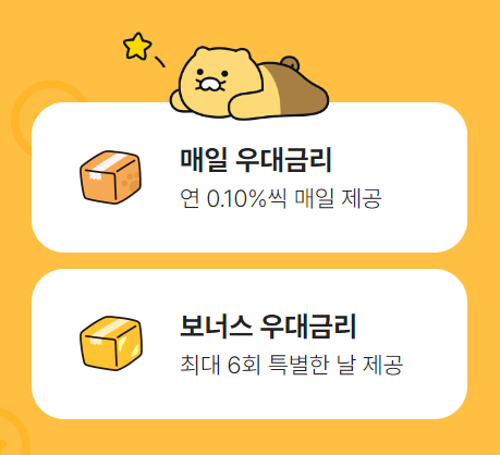 - 또한, 입금할 때마다 귀여운 춘식이가 등장해 한층씩 계단을 올라가는 모습을 보여주어 추가적인 모티베이션을 제공합니다. 31일 만기에 납입한 금액과 이자를 함께 돌려받을 수 있습니다.