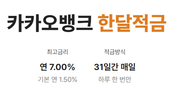 1. 카카오뱅크 한달적금: 연 7% 금리로 스마트한 자산 관리
